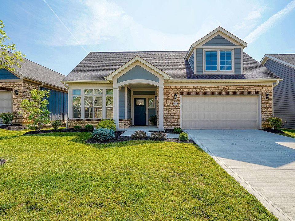 New price! Free-standing Epcon home in desirable Courtyards at River Bluff, just minutes from Powell. This spacious and open floor plan features 2 bedrooms on the first floor, a bonus suite/3rd bedroom upstairs, a four seasons room/den, a sitting room off of the primary suite, 3 full bathrooms, a first floor laundry, a gated courtyard & a 2.5 car attached garage. Interior features include a universal design layout with wider doors & hallways, zero threshold at the front door & garage entry, an upgraded trim package with crown molding & cased windows,