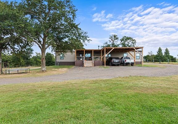 Quiet peaceful country living! This 2023 manufactured home with 2280 sq ft sits on 10 acres in the Cayuga ISD. Mature shade trees with a circle drive around the house. Open floor plan, 4/3 split bedrooms, very spacious throughout the house. 16x20 covered porch on the back overlooking the beautiful, improved pasture and pond, two car attached carport, nice 800 sq ft shop with plenty of space for storage or hobbies, and a storage shed. Improved Fenced and cross fenced.