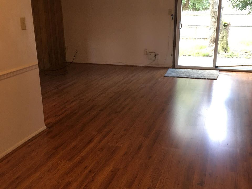 1400 sq ft of living space! Wonderful use of space!! Large living and dining areas with eat in kitchen. New floors and freshly painted. Remodeled kitchen! 3 bedrooms- large master bedroom. Fenced backyard. Great Location! tenent responsible for water and electricity; credit check