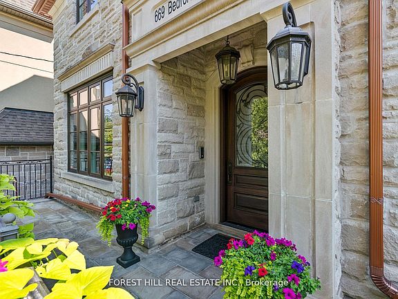 Welcome to 669 Bedford Park Avenue A Sophisticated Custom Residence in Prestigious Ledbury Park Set on a beautifully landscaped lot in the heart of coveted Ledbury Park, this exceptional custom-built home is a masterclass in refined living. Designed by renowned architect Lorne Rose, this 4+1 bedroom, 6 bathroom estate showcases elegant craftsmanship and luxurious functionality across every level. Boasting a classic layout with 10-foot ceilings on the main floor, the home is bathed in natural light and offers grand proportions throughout. The heart of the home is a stunning gourmet kitchen featuring custom cabinetry, granite countertops, an oversized island, and premium Thermador and Bosch appliances. The kitchen flows seamlessly into an expansive family room with a gas fireplace and custom built-ins perfect for entertaining. A standout main floor office with rich wood cabinetry offers an ideal space to work or unwind. French doors at the rear open to a private backyard oasis complete with a heated saltwater pool by Seaway Pools, an interlocking stone patio, and lush, professional landscaping perfect for outdoor dining and relaxation. Upstairs, the luxurious primary suite includes vaulted ceilings, a spa-inspired ensuite, and a custom walk-in dressing room. Three additional bedrooms each have walk-in closets and private ensuite baths. The walk-out lower level enhances comfort and versatility with radiant heated floors, a large recreation room with wet bar, oversized mudroom, and a fifth bedroom with ensuite ideal for guests, a nanny suite, or gym. Located on a quiet, tree-lined street, steps from top schools, parks, boutique shopping, and transit, 669 Bedford Park Avenue is a rare offering of timeless sophistication and exceptional design in one of Toronto's most prestigious communities.