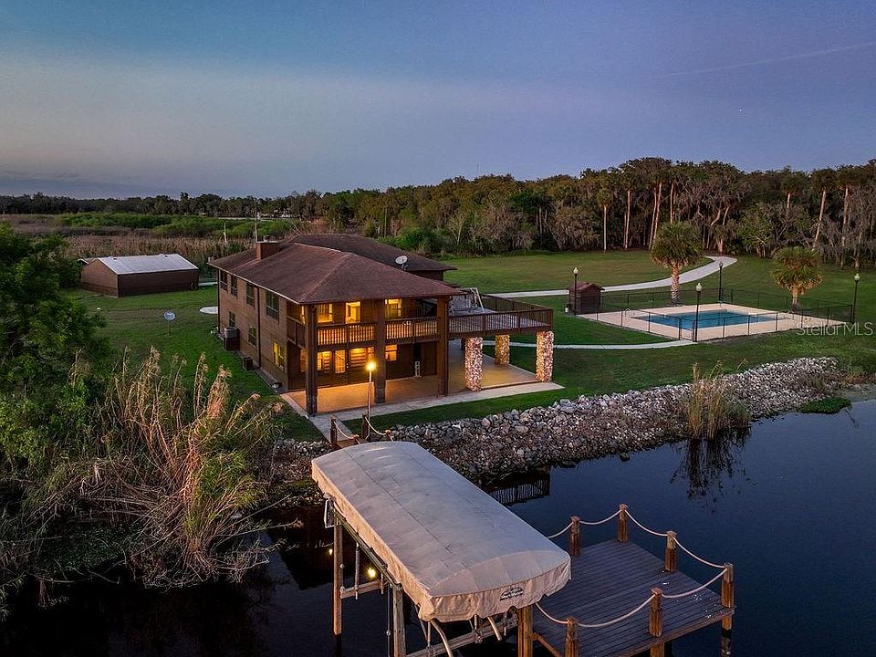 One or more photo(s) has been virtually staged. Welcome to your new private St. Johns River front paradise! You've finally found the perfect oasis, with not just one, not two, but THREE sides of river frontage, totaling an incredible 4,589 feet. That's right, 4,589 feet of prime St. Johns River frontage on 29 acres of land. This is truly a one-of-a-kind property that will take your breath away. From the front porch, you'll enjoy stunning views across the river that will remain serene, as the land on the opposite shore is protected and can never be developed. Imagine taking in the tranquil water views while watching the abundant wildlife all around. And don't even get us started on the spectacular sunrises and sunsets! After a day out on the river, simply pull your boat up to the private dock with pontoon boat lift for easy and convenient river living. The exterior of the home features hardy board siding throughout for maximum durability, while the huge porch offers ample space for leisure and entertaining. The detached garage/shop/barn provides an additional 900sqft of versatile space to make your own. Inside the home, you'll find unique and elegant features, such as stunning concrete countertops in the kitchen and sleek epoxy flooring on the first level. And let's not forget about the huge pool for endless summer fun! We could go on and on about this incredible property, but words simply can't do it justice.There is so much to love about this St. Johns River paradise property that words can't do it justice. Request the video link and come see it for yourself. You won't be disappointed!