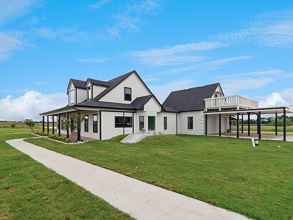 Discover the perfect mix of modern luxury and rustic charm in this beautifully renovated farmhouse, set on nearly one acre with peaceful countryside views. Lease in luxury! Inside, an open-concept layout blends farmhouse character with sleek finishes, including luxury vinyl plank flooring throughout. The home is fully fenced with a solar-powered electric front gate for added security and convenience. Great for pets and kids. This 3-bedroom home also offers a dedicated office, a spacious game or media room with balcony access, and designer touches in every room. The gourmet kitchen impresses with quartz countertops, premium Bosch appliances, a dry bar, and a large island perfect for entertaining. The primary suite boasts a spa-inspired Hollywood-style bath with double vanities and a generous walk-in closet, while two upstairs bedrooms share a stylish full bath. A separate staircase leads to a versatile game or flex room that opens onto a large walk-out deck ideal for watching sunsets. Outdoors, enjoy a covered patio, pergola, fire pit, and the privacy of brand-new perimeter fencing. Additional perks include a storm shelter, dog kennel, RV parking, and a brand-new 35-year roof. Conveniently located near top-rated Gunter schools, and major highways, this home offers the ideal combination of peaceful country living and modern convenience. Tenant pay all utilities and maintains lawn
