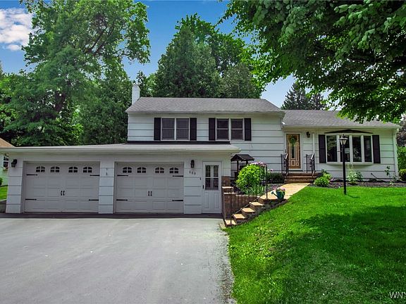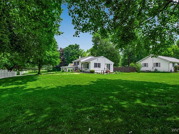 Welcome to this beautifully maintained home just minutes from the Village of East Aurora! This spacious and inviting home features a 3-car attached garage with entry through a mudroom into a cozy family room with gas fireplace, full bath, and laundry room combo. The bright kitchen and dining room overlook a beautiful, park-like view of the yard and open into the spacious living room. The upstairs bathroom features a new Bath Fitter tub surround with a lifetime warranty. New luxury vinyl plank flooring has been installed throughout most of the main living areas alongside original hardwood floors. Additional features include crown molding, 3 mini-split air conditioning units, sliding glass doors overlooking a quaint vegetable garden, and stainless steel kitchen appliances. Plenty of storage space throughout. The basement features a craft/work area and a tankless boiler (2016). The beautiful yard includes mature trees, a 14’ x 12’ storage shed with attached Trex porch, white picket fence, brick retaining wall and steps, and electric pet fence. The garage roof was updated in 2020. A move-in ready home that offers peace, privacy, and proximity to all the charm East Aurora has to offer, without village taxes!