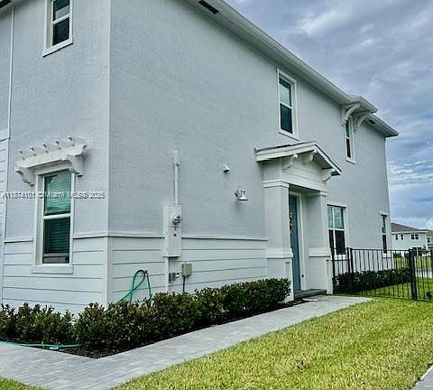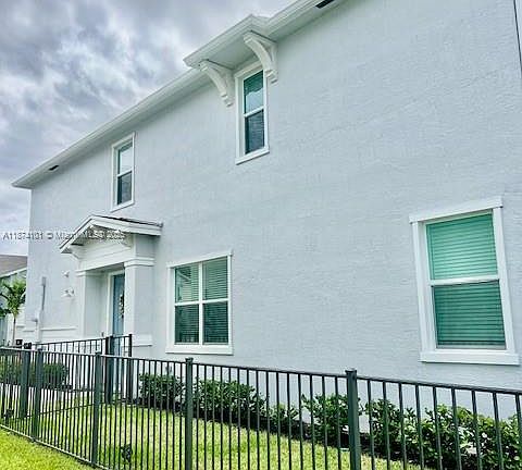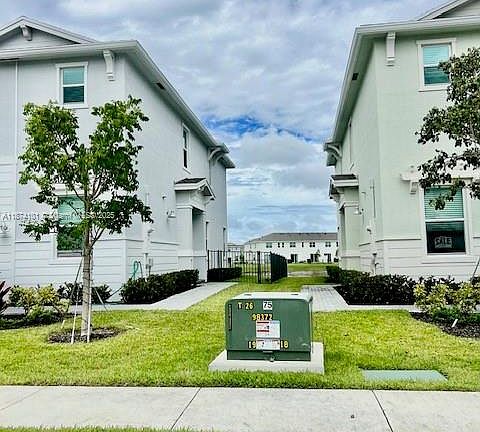 Newer Townhome from 2024 In gated community Veranda Landing, lake view .Tile in first floor, carpet upstars. 3 bedrooms 2.5 baths plus an extra room/ Den or office in first floor . Italian white cabinets, quartz countertops, stainless steel appliances. Hurricane impact windows through out the whole house. Easy to show. Quick move in. House is fenced