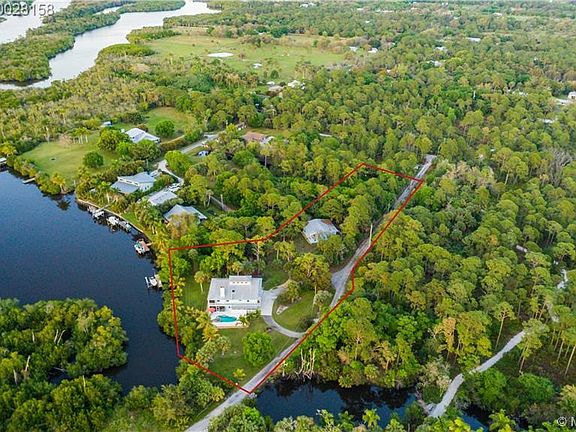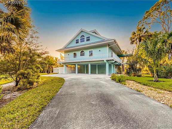 Custom Waterfront Home with Private Dock. Key West Estate with Separate Guest House. Irreplaceable Boater Paradise situated on over 250+ feet of direct Water Frontage and a private dock with boat lift. Ease of Access to the Intracoastal Waterway. Enjoy South Florida's Sunshine while surrounded by Tropical Landscape and Private Gardens. Tucked away with private drive and located next to the Delaplaine Preserve area. Home features some of the finest custom millwork and craftsmanship including wood floors accented with floor to ceiling windows. One Owner custom designed 3-bedroom - 3 Story home enhanced with hardwood floors, tongue and groove Yellow Pine ceilings, Fireplace, Recently renovated Kitchen and Main Bedroom. Spectacular Sunsets are yours from the wrap around - Screen Enclosed Veranda areas. Home Office invites the outdoors in with French Doors opening to additional living outdoor space and Private Pool. Separate Detached Guest House and Main Home offered by appointment only.