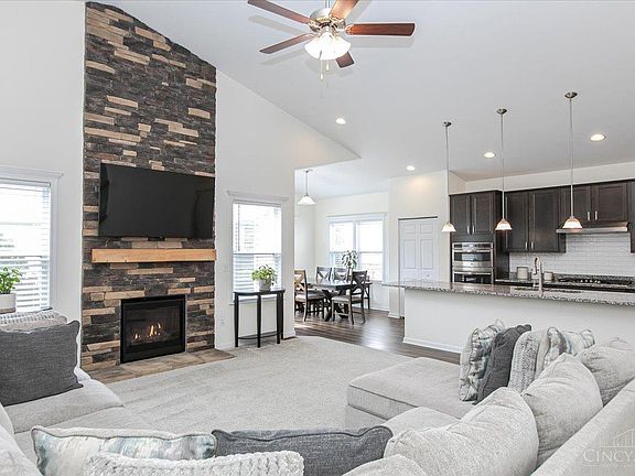 This stunning two-story home offers nearly 2,600 sq/ft of beautifully designed living space, plus an addtl 1,600 sq/ft of unfinished basement already prepped w/plumbing for an extra bathroom! Located in a charming Anderson Twp HOA neighborhood, where lawn care and snow removal for the driveway and front walk are expertly managed, this home ensures a truly effortless lifestyle. Step inside and be captivated by the soaring brick fireplace, a striking centerpiece in a meticulously maintained home that, despite being only five years old, looks and feels brand new. The kitchen is a chef's dream, thoughtfully designed for both culinary excellence and everyday convenience. The spacious primary suite spans nearly 450 sq/ft, providing a luxurious retreat, while the expansive basement presents a blank canvas for customization ready for you to create the perfect space to suit your needs. A rare find that blends elegance, comfort, and convenience this home is waiting for you to make it your own.