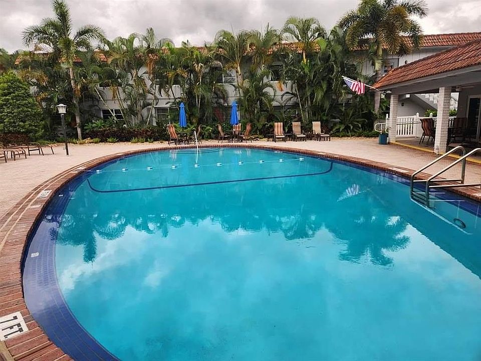 Great condo. Corner unit. Bright and airy. 1st floor. Park just outside your door. Spacious rooms. Bedroom will fit a King size bed and lots of furniture. Walk in closet. Updated appliances. Just steps from the Pool , clubhouse and tropical courtyard. Coinless laundry just down the hall. Very friendly complex and very well maintained. Buildings are in very good condition. Pet friendly. 1 per unit. May 20 lbs. Additional Storage included.