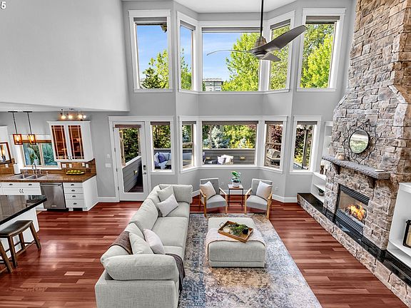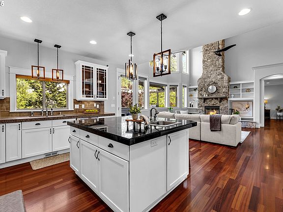 Nestled in the top-rated Camas School District, this stunning former Parade of Homes property offers the perfect blend of luxury, comfort, and thoughtful design. Freshly updated throughout, you’ll be welcomed by a bright open layout, beautifully refinished hardwood floors, custom millwork, plantation shutters, and three inviting fireplaces.The gourmet kitchen features an oversized island with prep sink, built-in ovens, gas range with hood, and a spacious butler’s pantry — ideal for entertaining or everyday convenience. Designed with flexibility in mind, the home features two primary suites with spa-inspired bathrooms and walk-in closets — one conveniently located on the main floor with in-suite laundry hookups, and another upstairs — perfect for guests or multigenerational living. Downstairs, the ultimate retreat awaits: a full home theater, wet bar with kitchenette, fitness room, steam shower, and private sauna — offering a wellness suite and entertainment lounge right at home. Step outside to a peaceful, tree-lined backyard with a seasonal creek, large deck, fire pit, and a covered patio made for year-round enjoyment. Additional highlights include a built-in central vacuum, dual-zone HVAC, abundant storage, and a spacious three-car garage. Located less than a mile to Lacamas Creek Trail System and just minutes to vibrant Downtown Camas. This home blends everyday comfort with luxury touches, offering plenty of room for relaxing, entertaining, and living your best life.