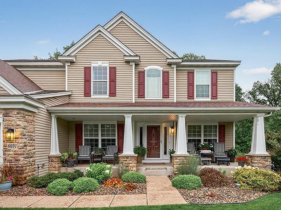 Discover the perfect blend of privacy, elegance, and space in this stunning two-story home, nestled on a quiet cul-de-sac with a nearly three-quarter acre, tree-covered lot. Offering over 3,100 finished square feet above grade, this property is a rare find that promises a lifestyle of comfort and sophistication. Luxury and Functionality Throughout Step inside to find a beautifully updated home featuring neutral colors, prime finishes, and countless upgrades. The main level is designed for both grand entertaining and everyday living, boasting formal living and dining areas, a perfectly placed bar area off the kitchen, and a highly functional floor plan. The gourmet kitchen is a chef's delight, updated and ready for your culinary creations. It is the heart of the home, easily serving the dining area and connecting to the exceptional backyard. The family room is a true showstopper, anchored by a cozy gas fireplace and custom built-ins, with jaw-dropping, floor-to-ceiling windows that flood the space with natural light and offer breathtaking views of your private surroundings. Practicality is also key, with convenient main-floor laundry and abundant closet space. Four Bedrooms on One Level Upstairs, you’ll find a coveted layout with four spacious bedrooms on one level, providing ideal comfort and accessibility for the whole family. Outdoor Oasis and Future Potential Enjoy your morning coffee on the charming covered front porch or host evening cocktails on the low-maintenance deck, overlooking the serene, wooded backyard. The nearly 3/4 acre lot provides the space and privacy you desire. The unfinished walkout lower level is bathed in natural light and offers incredible potential to customize and expand. With a fourth bathroom already plumbed, it’s ready for your finishing touches to create a future recreation room, home gym, or guest suite. This home truly offers everything you could dream of—a beautiful, functional, and private haven that stands apart from the rest. Come and experience its perfection for yourself!