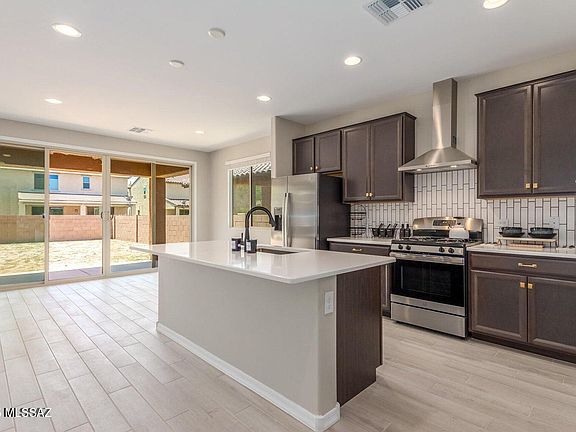 Never occupied! Here's your chance to own this pristine 4-bedroom home with a Den/Office. Located in S.E. Tucson. The open layout welcomes you with tile flooring, soothing colors, and recessed lighting. Multi-sliders seamlessly blend indoor and outdoor living. The kitchen features wood cabinetry, stylish tile backsplash, quartz counters, stainless steel appliances, and a breakfast bar on the center island. Relax or entertain in the spacious second level loft area. The bedrooms offer plush carpeting. The primary bedroom offers private bath with dual vanity, and a spacious walk-in closet. Outside, the backyard with a covered patio is ready for your personalization. Whole-House structured wiring network for: audio, video, data, telephone, television, home automation or security.