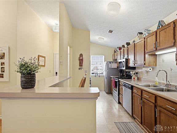 Vaulted ceilingSunny patioOpen-concept layoutCozy fireplacePantry closet
