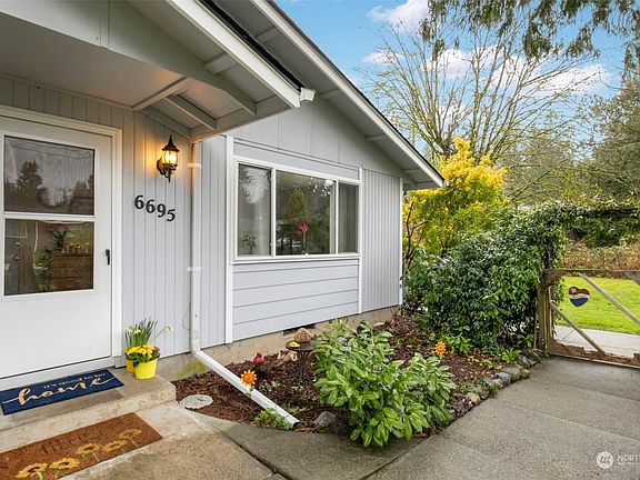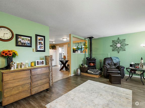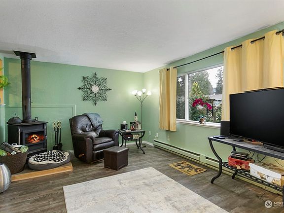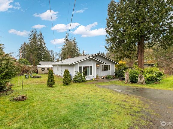 Super cute with some lovely updates in this great rambler. Enter the bright living room with new LVP floors & wood stove to warm the whole house. A second living room offers immense flexibility & opportunity! 3 bedrooms, 1 bath & amazing potential to easily create a sweet Primary Suite out of the bonus living room & 1 of the bedrooms. Full bathroom has new LVP too + new toilet & vanity. Eat in kitchen has tons of storage, with a nice "window" to the living room & slider to the back patio. Oversize, flat lot, offers lots of opportunities to enjoy the outdoors too! Garden space, patio space, shed, firepit, tons of parking and a fenced back yard! Walking distance to park & ride parking to the ferries. New exterior paint, newer roof. A charmer!
