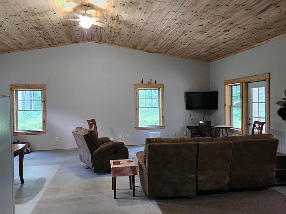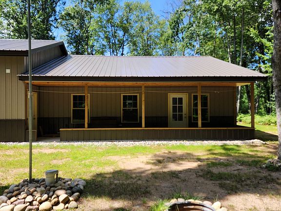 A great Barndominium located on 10 wooded acres in the country on a secluded, peaceful, quiet, private dead-end road, yet only 5 miles from Walmart. Radiant floor heat in house AND the attached 30 X 36 garage! Room for your tools & workshop, cars, tractor, side by sides, snowmobiles, etc.!!! Plus there is a portable carport on the property. Home & garage have spray foam insulation, R-38 in garage & more in the house. Nice outdoor wood burner & shed full of wood for your use. Low utility bills too! A 15KW generator & can easily add Solar to it. Large open floor plan with Amish tongue & groove ceiling & a great barn bathroom door. The bath has a spacious tile shower & the laundry room is located in the bathroom. There's a 6' X 30' covered front porch overlooking fire pit, flagpole & woods. The property is mostly wooded with many trails for walking/riding & assessable to State land trails. There's even a circle driveway! Great hunting with deer on the property & lots of other wildlife. Property has been split into two 5 acre parcels, survey on file. Car hoist is not included with the sale.