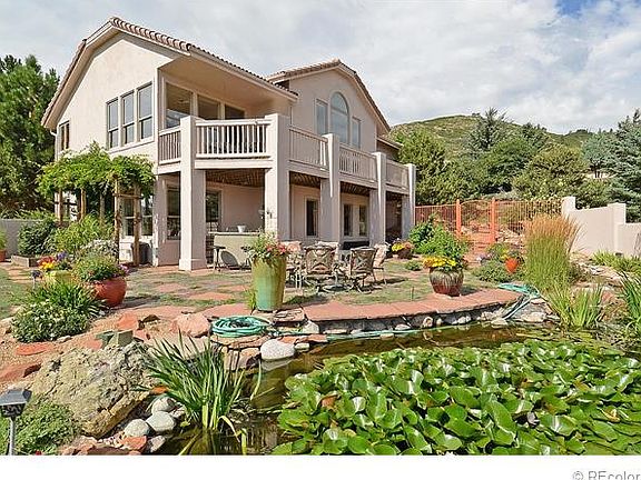Picturesque Setting with Unobstructed Views from this Ranch style home with a Finished Walk-out Basement. Quiet Cul-de-sac Location. Come home to unwind and relax on your huge flagstone patio or deck overlooking the lush landscaping, 75' recirculating stream, pond and Incredible Views of rock formations, the city, golf course, mountains and even Chatfield Reservoir. Back stucco wall was tiered to take advantage of all the views this home has to offer. Open floor plan. Great room with soaring ceilings & fireplace that interacts with the Dining room and Kitchen w/ island. Wall of windows for the Priceless Views! Hardwood floors. Main floor Master bedroom w/ 5pc Master bath, jetted tub, walk-in closet & door to deck. Finished Walk-out Basement: Family/Rec room w/ wall of windows, two bedrooms, updated 3/4 bath w/ slab granite & plenty storage. Rinnai tankless water heater & tile roof. Enjoy Arrowhead golf course & Roxborough State Park. Colorado living at it's Best!