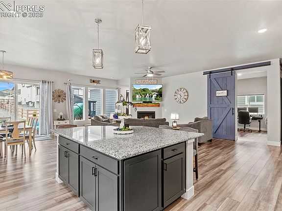 Welcome to where high-end design and vibrant community living collide in one unforgettable home! From the moment you pull up, you’ll be captivated by the custom Jellyfish lighting. Lighting up your home with brilliance and style all year long. Step inside to find luxury vinyl flooring stretching across a bright, open floor plan that feels as fresh as it looks. At the heart of it all? A beautiful, chef-inspired kitchen, complete with a huge island perfect for gatherings, upgraded countertops that gleam under natural light, and stylish finishes that make every meal feel special. Whether you're hosting a holiday party or a quiet night in, this kitchen is a showstopper. The spacious bedrooms feel like true retreats, offering the perfect balance of privacy and comfort. Downstairs, the basement movie room is ready for action with built-in surround sound speakers, while an abundance of storage gives you space to create a home gym, craft room, or ultimate flex space. And when it’s time for fun, Wolf Ranch delivers — enjoy a sparkling community pool, a dynamic rec center, miles of trails, parks, and community events that make every weekend feel like a vacation. This isn't just a house, it’s a lifestyle upgrade. Modern luxury, room to thrive, and a community that feels like home. Come experience it for yourself!