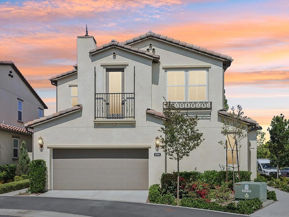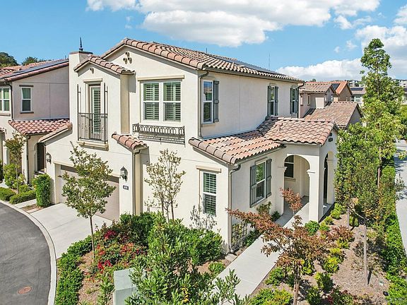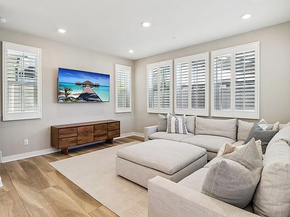 Welcome to this immaculate 4-bedroom, 3-bath home located in the highly sought-after enclave community of Treviso in Carlsbad! Built in 2021, this WiFi-Certified Smart Home combines modern design w/ high-tech convenience, featuring a Ring doorbell & alarm system, smart thermostat & Moen flo smart home water monitoring, LED lighting & Owned Solar. Situated on a premium corner lot across from the community pool, this light-filled residence offers 9-foot ceilings, a thoughtfully designed floor plan w/ luxury vinyl plank flooring & plantation shutters throughout. The chef's kitchen features pristine white cabinetry, elegant quartz countertops, a designer tile backsplash & stainless steel appliances. The spacious great room flows seamlessly to the private backyard, where you'll find custom pavers, professional landscape lighting & oversized sliding glass doors w/ sleek blinds—perfect for indoor/outdoor living. The main level includes a full bedroom & bath, ideal for guests or multigenerational living. Upstairs, you'll find the expansive primary suite, two additional large bedrooms & a conveniently located laundry room. The attached 2-car garage is equipped w/ upgraded epoxy flooring, built-in cabinetry & a tankless water heater. Treviso residents enjoy resort-style amenities, including a heated year-round pool & spa, outdoor showers, BBQ pavilion, two playgrounds & RV parking by reservation. Located within the highly acclaimed Carlsbad Unified School District & minutes from Park Hyatt Aviara, Omni La Costa, Batiquitos Lagoon, top-rated golf, hiking trails, and easy I-5 access.
