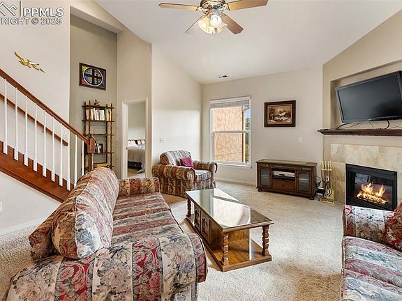 Welcome to low-maintenance living at The Cove at Cottonwood Creek! This spacious condominium offers three bedrooms and 2.5 bathrooms, perfectly suited for comfortable family living or entertaining guests. The inviting main level features a dining area with direct walk-out access to a private patio—ideal for outdoor dining or morning coffee. Enjoy the convenience of a dedicated laundry space, central air conditioning, and a new kitchen range and dishwasher, making everyday living a breeze. The primary bedroom includes a 5-piece master bath and a walk-in closet. An additional two bedrooms on the upper level provide privacy and offer ample space for everyone with a Pikes Peak view. The loft is a great space for relaxation or reading a book. Located just minutes from the best of Colorado Springs, you'll love the easy access to shopping, dining, parks, and trails. The HOA takes care of snow removal, trash service, lawn care, and more, allowing you to spend less time on chores and more time enjoying your home. Come and see it today!