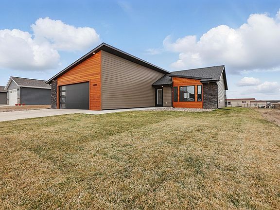 Beautiful Rapid Valley home built in 2022 featuring 2 finished bedrooms, 2 full bathrooms, a 1,056 sq ft ranch style home with an attached oversized 2 car garage on a 0.22 acre lot. The open layout kitchen has granite countertops, a large sink, and stainless steel appliances. The spacious master bedroom features an ensuite with tiled walk in shower. LVP floors throughout the home and Hardie plank cement board siding with stone & cedar accents.