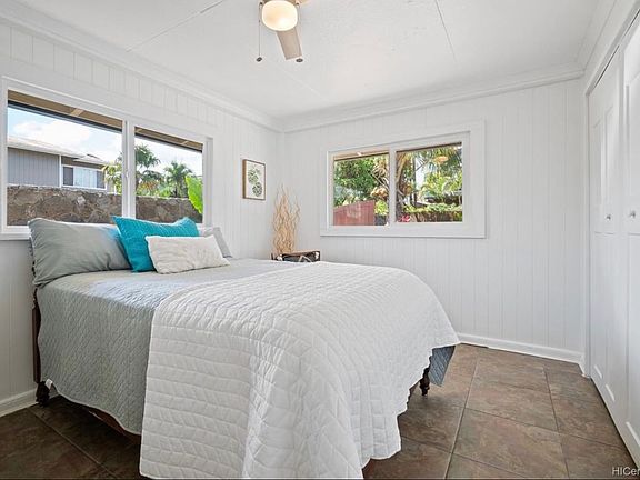 Freshly painted spacious 2 bedroom/ 1 bath steps from a sandy beach and bike path. Walking distance to Waialua Sugar Mill, Rec Center, & Haleiwa. Large bedroom closets & linen closet. Open living room w/split a/c. Ceiling fans in each room. Laundry room w/ washer & dryer. Water, lawn, & pest control included. 1 or 2 person occupancy. No pets. Water, lawn, & pest control included. None smoking property.