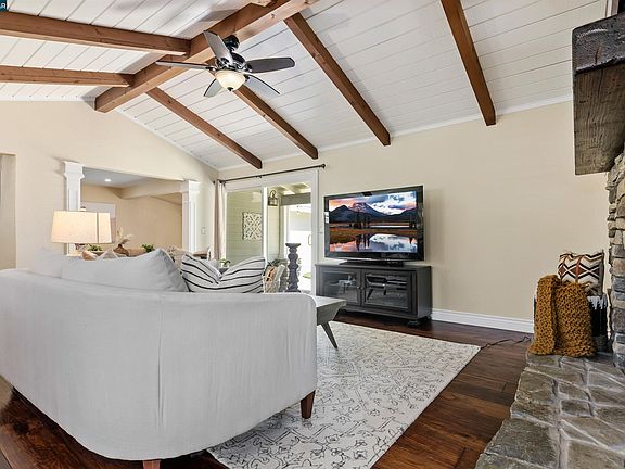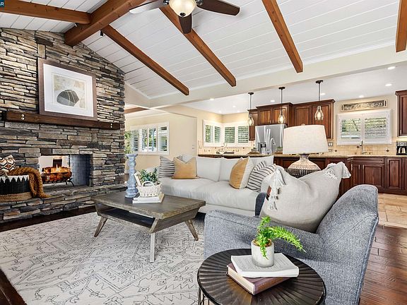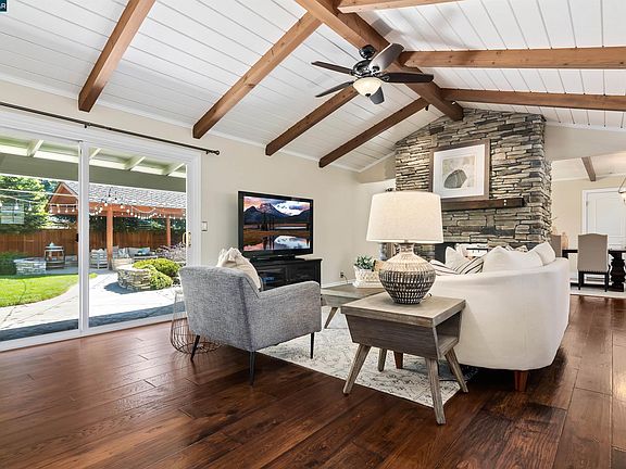 Prepare to be impressed! Single-story with no step downs, vaulted wood beam ceilings and wide plank hardwood flooring. No detail has been missed and in a prime location with Baldwin elementary, Charlotte Wood middle, Osage Park and the Iron Horse Trail only a few blocks away. Inside has all been updated within the past few years with a gorgeous great room with high end cabinetry, Thermador appliances, a large island with seating and several storage areas. The walk around stone fireplace provides perfect space between the family and dining rooms and easy access to the beautiful backyard. There's even a den area that could be made into an office or 4th bedroom. The primary suite overlooks the yard and has it's own sliding door out to the patio. The primary bath features a large vanity, walk in closet and tub/shower. There's a fabulous laundry room with a granite countertop, sink and tons of cabinet space. A hall bath serves two other bedrooms with a large walk in shower and updated vanity. The pancake flat, ultra private 0.33 acre lot has it all! The entertaining patio off the house, a covered pavilion pre-wired and plumbed for a built in BBQ, large grassy area, soothing waterfall and a bocce court. You have to see this one to believe! Open Sat, Sun 1-4pm