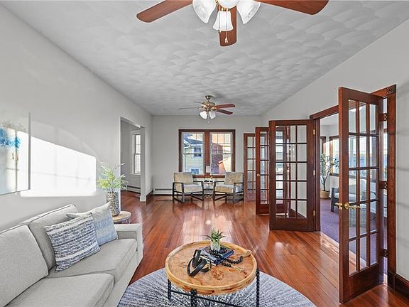Welcome to this stunning home that blends timeless charm with modern updates! Featuring 4 spacious bedrooms and 2.5 baths, this classic beauty offers a first-floor bedroom and full bath—perfect for guests or single-level living. Gleaming pine floors, tall ceilings, built-ins, and a stately brick fireplace highlight the home’s rich character.The oversized double living room and formal dining area with generous windows create a bright, welcoming atmosphere, while the enclosed front office—framed by elegant French doors—boasts scenic views of the Providence River and a nearby marina.The chef’s kitchen offers ample cabinetry and stainless steel appliances. Upstairs, you’ll find three additional bedrooms and a half bath.The lower level provides even more versatility with its own kitchen space, two rooms, full bath, and private walkout to the driveway and backyard—ideal for guests or multi-generational living. Recent updates include a new hot water tank, basement pump, vinyl flooring, insulation work by RISE ($15K value), and improvements to plumbing and electric. The exterior features maintenance-free vinyl siding and windows, a newer sewer line, and a back deck with water views of Johnson & Wales Harborside and Save the Bay.Nestled on a quiet dead-end street, this property offers peace, privacy, and proximity—just minutes from downtown Providence, Brown, RISD, Pawtuxet Village, and JWU Harborside. Don’t miss this rare multi-generational gem—schedule your showing today!