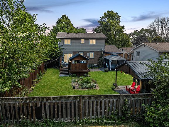 67 Barbara St. is a great combination of size, layout, neighbourhood, updates & fantastic lot, backing onto park/greenspace. Spacious 2 sty home is finished on all 3 lvls & offers a great backyard oasis. Large rear deck with privacy wall (2023) & covered deck extension with peaked roof, great for enjoying both open & covered deck space, plus reinforced for hot tub. Additionally, there is a gazebo, currently used for hot tub & firepit area. Large storage shed has metal roof, workbench, cupboards & ample electrical outlets inside & out, making it a great workshop space for hobbyists. Fully fenced yard also features a small garden, planter boxes around deck, clothesline & no neighbours in behind. Inside you will find a well laid out main floor, with L-shaped living & dining rm spaces. Front facing living room has laminate flooring & large casement window. Galley style kitchen boasts attractive medium brown cabinets, black sink, subway tile backsplash & 2 floor-to-ceiling pantries. Additionally, a full set of stainless-steel kitchen appliances are included. Rounding out the main is a convenient powder room & inside entry to the attached single car garage. Upstairs has 3 spacious bdrms, all with parquet hdwd & a recently completed dbl bathroom offering 2 separate bathroom areas for convenience. Main area offers a newly installed deep soaker tub plus 2 top-mounted sinks & new vanity for storage. Additionally, there is a separate area offering a 3rd sink & a toilet. Lower lvl is also finished & currently being used as rec rm & 4th bdrm (no door). Also, on lower lvl is a large laundry/storage rm. Efficient heat pump system handles both heating & cooling offering 4 wall units for year-round comfort (2 on 2nd floor, 1 on main & 1 in bsmt). Units are programmable & have smart thermostat technology. Other features incl: owned HWT, new windows on 1st & 2nd lvls (2022), paved parking for 4 cars & brick & vinyl exterior. Great family home close to amenities, CFB Trenton & Hwy 401.