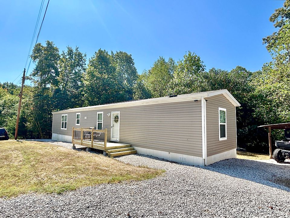 Don't miss this like new 2 bedroom, 2 bath lake home nestled on a wooded lot in a desirable lake community with no restrictions. With 1,088 square feet of living space, this inviting manufactured home features beautiful cabinetry, stainless appliances, a cozy electric fireplace with built-in shelving, and a spacious walk-in closet. Relax and enjoy a seasonal lake view from your rear deck, just a short golf cart ride away from Lake Cumberland and less than 1/4 mile from a nice boat ramp. The detached garage offers extra storage and convenience, you'll love being just minutes from Wolf Creek Marina. This home offers the perfect combination of comfort and location for anyone seeking the lake lifestyle. This would be an ideal vacation get-away or a great VRBO!!!!