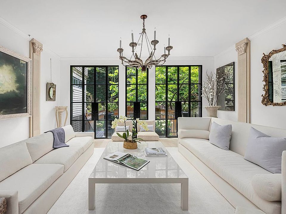 As you enter up the handsome stoop you are welcomed from the foyer into an intimate front parlor overlooking Bedford St. with sumptuous walls finished in Venetian plaster and a wood burning fireplace with custom stone mantle. Beautiful white oak waxed floors further enhance this room and are continued throughout the house. The rear parlor is a fabulous open entertaining space distinguished by an expanse of floor to ceiling French doors opening onto a picturesque, landscaped garden designed by Mark Carbonell.