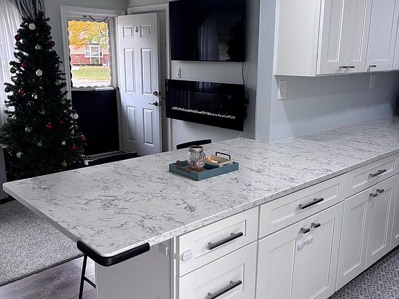 Detached garageNew flooringUpdated vanitiesRecessed lightingStainless steel appliancesNew metal roofCozy bar nook