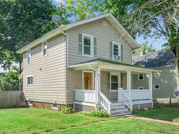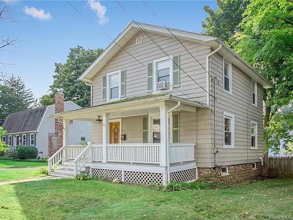 Charming 1920's Colonial in Bristol's Stafford District. Located on a quiet street, this 3 bedroom, 1.1 bath home features a welcoming front porch, perfect for hanging out on warm summer evenings. The living room is spacious with high ceilings, and opens to a formal dining room featuring craftsman style built ins. The kitchen has updated maple cabinetry, newer appliances, tile back splash and tile flooring. A half bath is located off the kitchen. Upstairs are 3 bedrooms with refinished hardwood floors, along with a full bath. The home has a 4 year old Navien high efficiency heating and hot water system, perfect for keeping your energy bills low. Off the back of the house is a large, level backyard, completely enclosed with wood fencing for privacy. The shed at the end of the driveway offers additional storage. Easy access to Route 72 and nearby shopping and restaurants along Route 6. This home is move in ready and is not to be missed