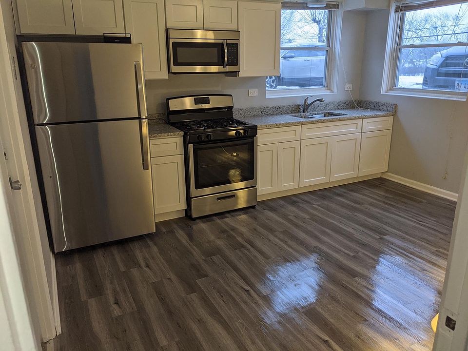 Completely remodeled spacious 1 bedroom apartment. Heated floors. Stainless appliances. Granite Countertops. Tons of closet space. Laundry room with private storage. $50 extra per month for each animal. Rent includes gas, water and heat and 2 off street parking spots. 2 adults maximum in apartment.