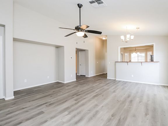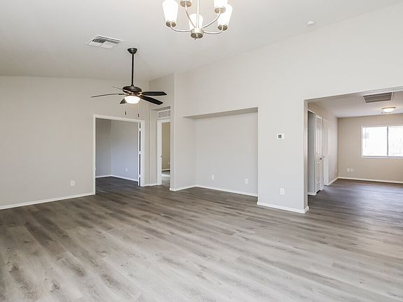 Located in San Tan Valley, Arizona, this spacious three-bedroom, two-bathroom rental home comes with a two-car garage. Take notice of the vaulted ceilings in the living room that opens up the room even more. Beautiful granite counters shine in the spacious eat-in kitchen. With stainless steel appliances, this room is perfect for meal prep. The breakfast nook lets in lots of natural light due to the large windows. The master bedroom has its own double doors leading to a small patio. Enjoy your coffee out here in the mornings. Off of the living room is another set of double doors leading to another patio. The fenced yard offers a private space for friends and family. Set up your showing today!