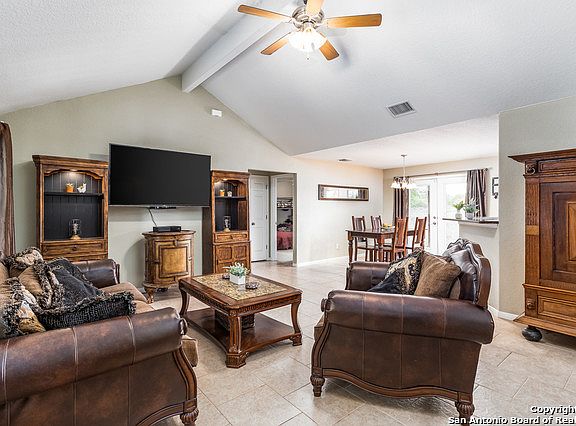 Enjoy quiet country living at its best! This gorgeous 3/2/2 home sits on over an acre in highly sought out Trophy Oaks Subdivision. This beauty features vaulted ceilings, carpet in bedrooms, custom paint throughout, mature trees with covered porch & patio. Kitchen boasts oak cabinets, granite counters, stainless steel appliances, breakfast bar & tiled floors. Relax in your master bedroom complete with his & her closets, separate bath and walk-in tile shower, dual sinks and lighted ceiling fans. View today!