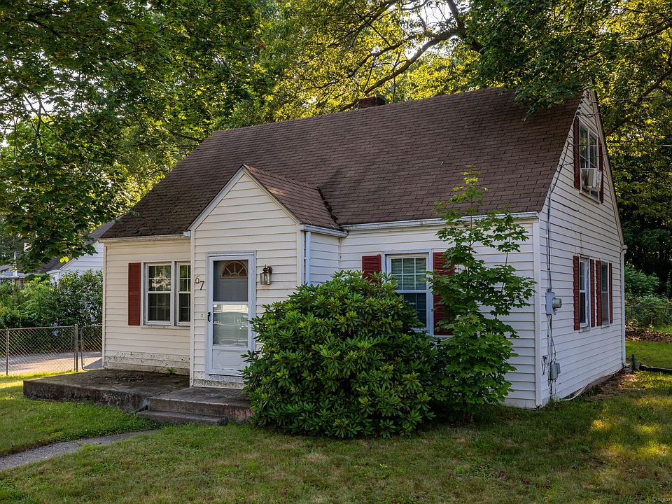 Welcome to 67 Eastwick Road! This charming Cape-style home offers 2 bedrooms and 1 bath across two levels of flexible living space. One bedroom is conveniently located on the main floor, while the second upstairs creates a perfect retreat, guest room, or home office setup. The home features a brand new water heater, new windows throughout the first floor, and a 1-car garage, adding value and peace of mind. Enjoy hardwood floors, a bright living area, and a spacious, level backyard - ideal for relaxing or entertaining. Located on a quiet street near CCSU, parks, shops, and major commuter routes, this home is perfect for first-time buyers, downsizers, or investors. HIGHEST AND BEST SUNDAY 7/13 7PM
