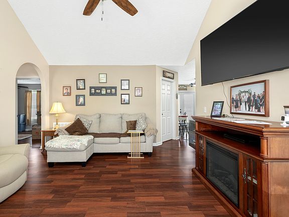3 bedrooms 2 full bathrooms - large kitchen, eat in dining area - vaulted and tray ceilings. The attached 576 sq. ft. garage offers plenty of room for storage and parking—large enough to comfortably fit two vehicles or provide extra space for hobbies, tools, or outdoor gear. Additional storage available with wooden storage shed in the back yard