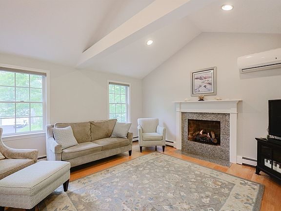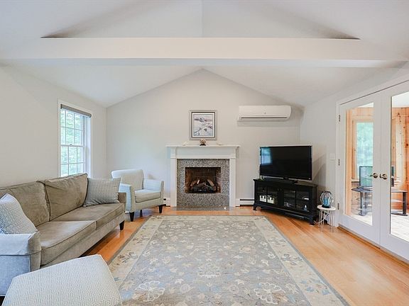 Custom built Gambrel Cape meticulously maintained surrounded by beautifully landscaped grounds, perennial gardens, along with impressive aggregate walkway and granite step entrance. So many updates and upgrades! Stunning kitchen, new LG stainless appliances, granite counters, peninsula with seating, sunny dining area, custom cabinetry w/loads of storage, flows to huge hardwood cathedral family room with gas fireplace, enter thru french doors to a delightful sunroom, with slider to yard. Convenient first floor tiled laundry room and wonderful first floor office/den/bedroom with full bath provides so many options. Grand front to back living room/dining room are light and bright with wood fireplace, step out of sliders to amazing Trex deck overlooking the lush expansive lawn. Full bath upstairs, main bedroom/3 closets. Gas stubs for gas stove hookup. Lochinvar gas boiler, vinyl siding, irrigation system. Basement with workshop and workout area.