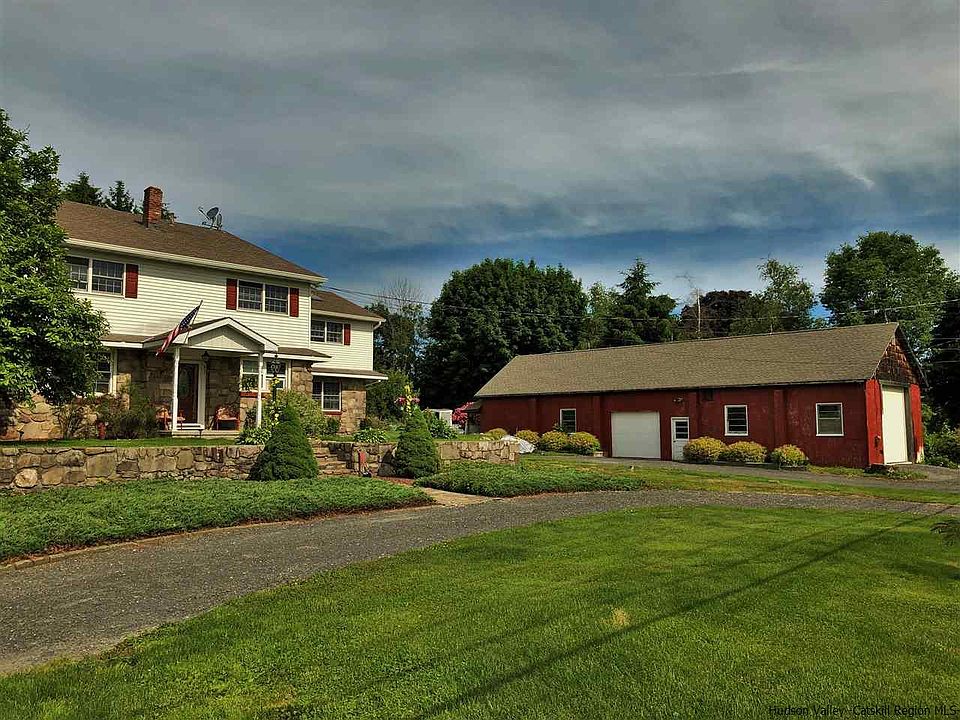 WALLKILL-3,200 SQFT STONE COLONIAL FARMHOUSE, 70x22 GARAGE & 3 STORY DAIRY BARN-This spacious home is available for a new chapter in its history. Beautifully renovated with a master suite on first and second level. This home is charming & unique w/its interior stone walls & spacious rooms. It has so much to offer for anyone looking for a comfortable, open & spacious country home w/modern conveniences, in law suite, 60x35-3 story dairy barn w/electric & a 70x22 concrete block garage w/two overhead doors, electric & woodstove. The farmhouse has a 20x10 attached, heated greenhouse room w/all new windows, huge eat in country kitchen w/granite countertops & recessed lights, central air, generator hookup, hardwood floors, woodstove, whole house fan & five zone heat. Take a stroll through the gardens & find a coy pond, flagstone patio, extensive wood decking & lighted gazebo. So many interesting features. Near Mohonk and Minnewaska, all major commuter roads, train to NYC & Stewart Airport.
