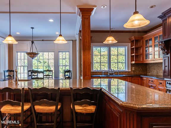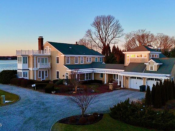 Water, Water, & Water!!! Spectacular views of the Shrewsbury River. 233 feet of waterfront property on 1.63 acres. 125 foot dock with bubbler. 240 foot bulkhead. This is a boater's dream. Highest point on Gooseneck Point Road. Gunite pool with elevated hot tub facing the water. Designated full bathroom next to the pool. Outdoor lighting and underground sprinkler sourced by well. Generac Generator. All this and 7500 sqft of exquisite American Colonial beauty. Millwork, coffered & beamed ceilings with 3 fireplaces. Two en suite bedrooms. 500 bottle wine cellar room adjacent to loft area with water views. 9 foot ceiling on the first floor. Kitchen with two Wolf ovens, Wolf warmer & Sub Zero Refrigerator. Unique ceramic & stone flooring throughout the house. Majority of rooms have breathtaking views of the water. If you like inspiring sunsets and expansive water front property, this should be your home!