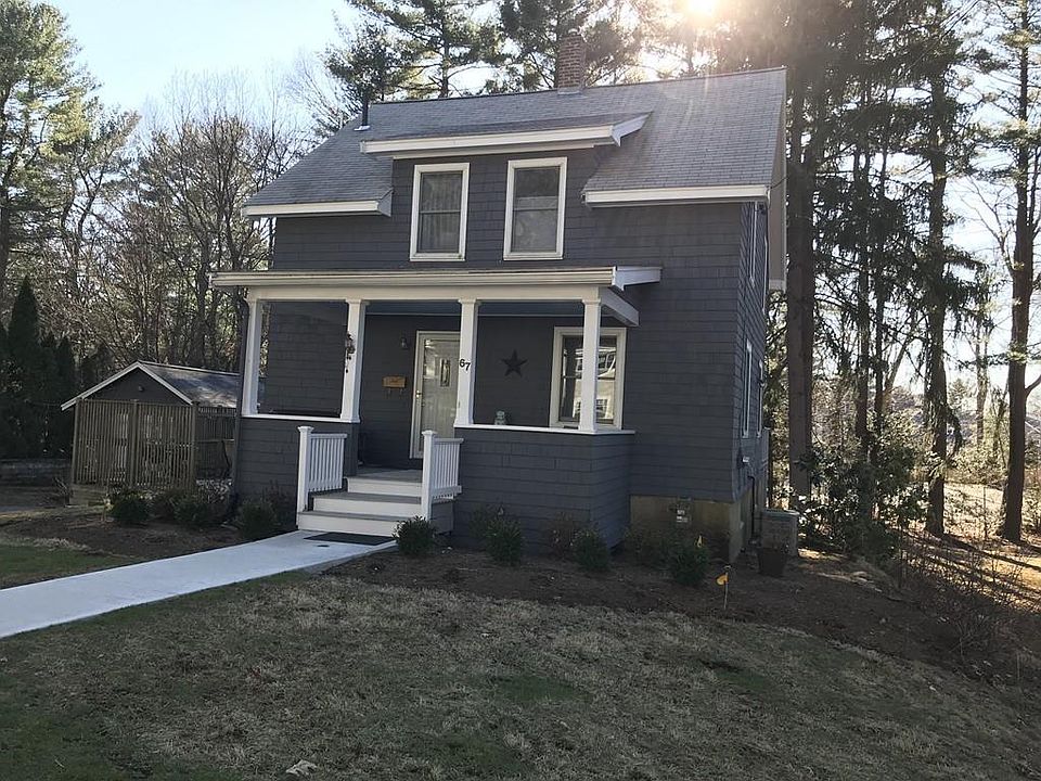 This wonderful colonial is sited on an enormous 17,464 sq. ft, lot, rarely found in Needham. The morning sun splashes onto the welcoming front porch making it a perfect place to start your day with a cup of coffee. While the warm heart pine floors shine throughout the home and are in supreme condition creating a feeling of ultimate luxury in this special home. The dining room is large enough for extended family and friends and has stunning molding and wainscoting creating an elegant room. The kitchen is filled with cabinets to store all your supplies and it opens to a generous back deck perfect for entertaining! Upstairs are three large bedrooms and remodeled full bath. The lower level features a super family-room for hanging out and a home office. There is also significant patio space for lounging and gardening. The extensive lot provides endless opportunities. High ceilings, hardwood floors, C/A, 2012 roof, beautiful golf course views make this irresistible!! Close to train