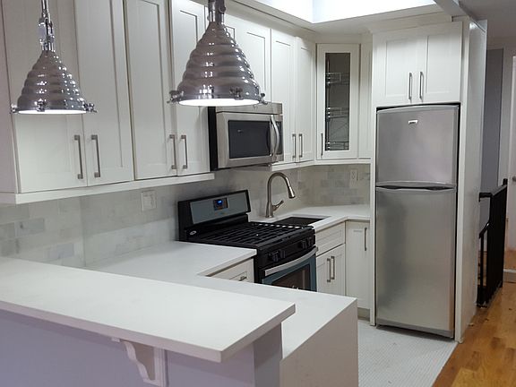 Gorgeous brand new building. Beautiful two bedroom duplex. Large Private yard. One month FREE rent! State of the art kitchen with stainless steel appliances. Kitchen islane breakfast bar. Microwave. Nice common area. Tons of natural light throughout. Central A/C Heat. Two large bedrooms on main floor with windows and closet space. Beautiful finished basement with bathroom. Laundry on premises. Video intercom. Roof deck with city views. (Price advertised is net after 1 month free on a 16 month lease. Gross 3088) NO FEE! WON'T LAST. Great location. Just three blocks to the Gates Ave J-Z trains. One block from Broadway with Shops, Bars, Delis, Groceries, and Restaurants at every step. Call, Text or email Izzy to schedule a viewing today. To view similar apartments in this area check out my website. www.nakedapartments.com/me/yisroel-izzy-simpson Good income and credit. Guarantors accepted.