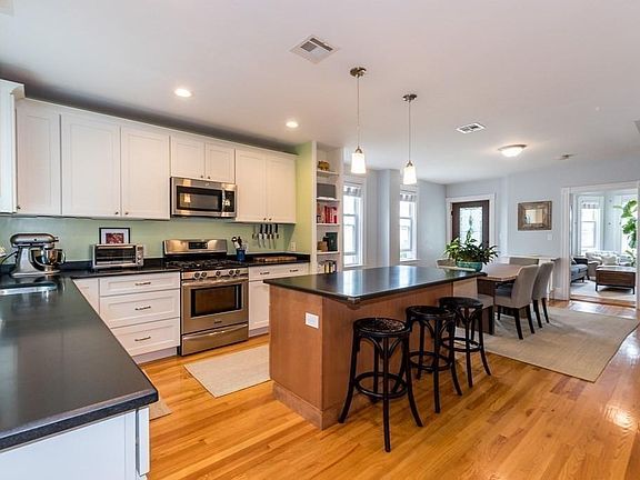 This one is a stunner! Completely renovated in 2014, this townhome offers the space and feel of a single family home, complete with private fenced yard. Light, bright and airy, the main level features an open concept floor plan. Chef's kitchen with custom white cabinetry, granite counters, stainless appliances, and overlooks the dining area. French doors to the living room with walkout bay window. The half bath, mudroom/laundry room complete the first floor. The upper levels offers 4 spacious bedrooms and 2 full baths including a master suite with private en suite, along with an open sitting area/home office. So many cool features - high ceilings, crown moldings, tall windows, period details, wide pine floors, generous closets. Antique appeal with modern flair. Full basement with plenty of storage. Lovely backyard with deck and patio. Super location - walking distance to all the shops and restaurants in historic Dedham Square, and easy access to bus, train, highways. Treat yourself!
