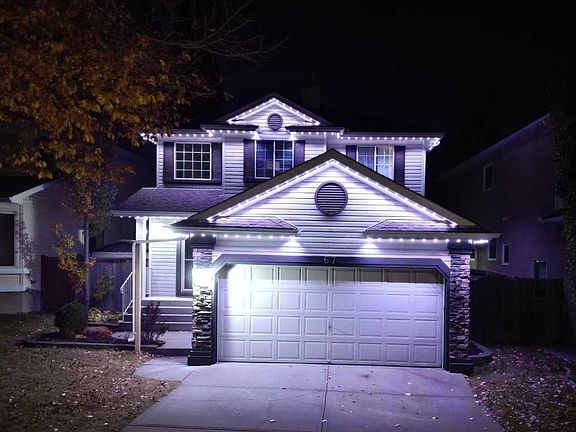 Welcome to this beautifully updated and fully developed two-storey home, ideally situated on one of Hidden Valley’s most sought-after streets. With over 1,600 sq. ft. above grade and four bedrooms and three-and-a-half bathrooms, this property offers the perfect blend of comfort, style, and family functionality. From the moment you arrive, you’ll notice the exceptional pride of ownership—the home has been freshly painted inside and out, features updated lighting, and boasts major upgrades: shingles were replaced in May 2022, central air conditioning, and Gemstone exterior lighting, adding both curb appeal and year-round functionality. Step inside to a welcoming foyer that opens into a sunlit open-concept main floor designed for everyday living and entertaining. The living room centers on a cozy gas fireplace framed by windows, creating a warm, inviting atmosphere. The kitchen features stainless steel appliances, a corner pantry, and plenty of prep space for family meals. Upstairs, the primary suite impresses with a walk-in closet and a 4-piece ensuite, highlighted by stylish glass-block details. The fully finished basement expands your living space with a spacious family room, a custom-built bar with stone backsplash, a 3-piece bath, and a den that can efficiently serve as a fourth bedroom or home office. Step outside to your sunny southwest-facing backyard oasis—professionally landscaped with stone-walled flower beds, retaining walls, and a large patio with a fire pit, perfect for summer gatherings and evening relaxation. Located steps from schools, playgrounds, and green spaces, this home delivers the complete Hidden Valley lifestyle—move-in ready and beautifully upgraded from top to bottom.