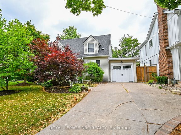 Nestled on a tree-lined street overlooking Twelve Mile Creek, in one of the city's most cherished historic neighborhoods, this elegant Cape Cod updated residence seamlessly blends timeless architecture with refined charm. From its pitched rooflines and classic dormer windows, every detail of this home has been thoughtfully designed to capture the essence of Old-World sophistication. Step inside to discover light-filled interiors with warm hardwood floors, Archways, French doors, and artisan-crafted millwork. You're immediately drawn down the hall to the Family Room filled with glass windows, but your journey begins at the entrance where french doors invite you to the Living Room featuring a decorative fireplace mantel. The formal Dining area is perfect for entertaining larger gatherings. Nearby is a Chefs Kitchen with ample cabinetry, accent doors, stone countertops, and a brick-style backsplash. A bonus built-in Breakfast Nook offers a cozy spot to enjoy your coffee and morning read.Through the Family Room windows, lush, meticulously landscaped gardens create a living tapestry of greenery and color, offering serene views that change beautifully with the seasons. The private garden is easily accessible and perfect for alfresco dining and entertaining, with a low-maintenance design that includes an integrated sprinkler system for effortless upkeep. Upstairs, spacious Bedrooms provide tranquil retreats with picturesque views. The basement, brightened by three windows, offers a blank canvas ready to be transformed into the space of your dreams whether a home office, media room, or guest suite. Rich in character and beautifully maintained, this home is within walking distance to parks, trails, St. Catharines Golf & Country Club, downtown boutiques, cafés and cultural landmarks. It presents a rare opportunity to live in a truly special neighborhood with modern low-maintenance features for easy living. Updates C/A '23, Furnace '22, Deck & Patio '23, Roof & Windows '17
