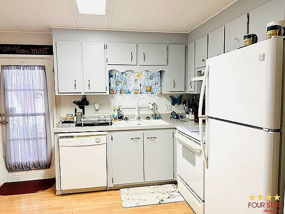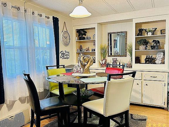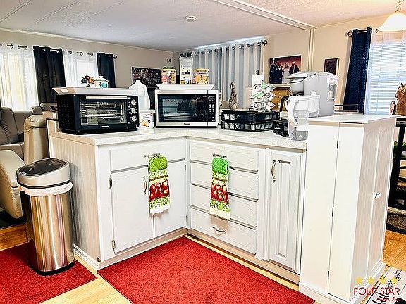 This home was remodeled with lots of loving care. Beautiful Island bar separates kitchen and dining area with lots of built in storage. Some of the upgrades include updated plumbing, rubber roof over, HVAC, duct system, vapor barrier encapsulation, and a dehumidifier was installed under the home. This is a great feature for those sensitive to mold or allergens. New lanai installed on front of home with privacy screen. Extra parking pad for car or golf cart. No rear neighbors and nestled high and dry. Low lot rent includes water, sewer, trash, and lawn service.