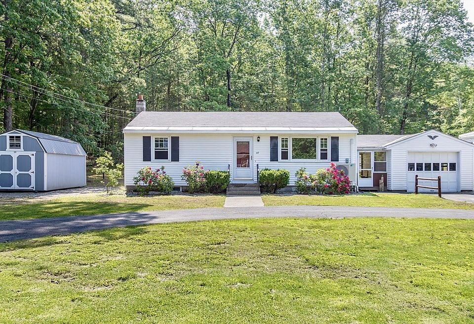 Looking for a low maintenance home in a peaceful setting with easy access to local amenities? This charming ranch is the perfect fit! Featuring a spacious living room, an eat-in kitchen, two comfortable bedrooms, and bathroom with walk-in shower, this home offers both comfort and convenience. The partially finished basement provides additional living or hobby space. Enjoy the backyard, complete with a new concrete patio and brand-new 10x20 shed, ideal for storage or a creative retreat. Recent updates also include energy-efficient mini-splits for year-round comfort. Located just 10 minutes from Greenfield, 20 minutes from Amherst, and close to the local high school and its sports fields, it's a great commuter location with everything you need nearby. Don’t miss your chance to own this sweet home!