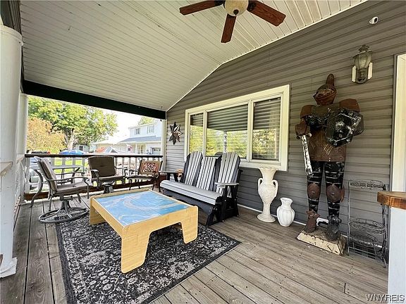 Outdoorsman's delight! Situated on a fabulous 3/4 Acre lot backing to beautiful Cayuga Creek. Single family 6 bdrm full bath home once used as a double. Makes ideal single family 6 bdrm home or easily converted back to 2-family/in-law setup w 3 bdrms on 1st flr & 2/3 bdrms on the 2nd level. Kitchen w/built in pantry, tiled cooking cove, curved raised ceilings. Formal din rm w/Cherokee hardwood flr & built in hutch. Built in bookcase on threshold to living rm w/full wall built-ins. Rear family rm boasts cathedral ceiling and ceiling fan. Primary bdrm w/stand up Jacuzzi shower. 2nd level w addtl 3 bdrms & kitchen w/dinette or 2-bdrm w/addtl family rm. Access 2nd flr from int or exterior stair entrance w/roof covering & breezeway. Fully insulated garage w/epoxy floor & garage door screen system & sliding glass door onto rear covered patio. 3 Addtl sheds. 4' deep dug-in pool w/new liner & composite deck surround. Whole house generator. Huge treed yard, groomed paths for walking/ATVs and large picnic/firepit/recreation area. New drain tile and masonry work just completed. Also listed as SFR B1523972