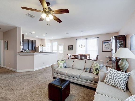 Beautiful 1 story home with stone & brick accents on oversized corner homesite. True Mother-in-law design with two bedrooms towards the front and master bed on opposite corner of home. Very open design. Kitchen opens to dining and family. Kitchen includes dark cabinetry, SS 2 compartment oven and raised bartop. Master includes dual vanities, WI shower and WI closet. Lg patio, Fruit trees & garden beds in huge back yard. Easy access to shopping, dining & Southwestern University.
