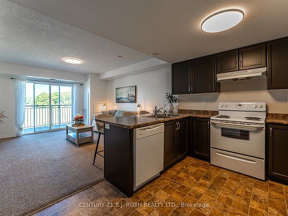 Step into cozy condo living, where tranquility meets everyday convenience in the heart of Guelph's vibrant South end. This well cared for condo offers a beautiful open concept layout, flooded with natural light. At the heart of the home is a sleek kitchen overlooking a bright living area to set the stage for both relaxation and entertaining. 2 bedrooms that provide a restful retreat, and a large 4-piece bathroom. In-unit laundry adds a layer of ease to your daily routine. Enjoy a peaceful outlook from your private balcony, providing a countryside feel to unwind. With recent updates throughout the building, including fresh paint and new carpeting (2024), peace of mind and hassle-free living are yours to enjoy. Nestled in the desirable Westminster Woods community, you'll find schools, parks, and transit just steps away. Pergola Commons is minutes from your door, offering shopping, dining, and entertainment. Under 10 minutes to the University of Guelph and Highway 401 makes commuting simple. Experience a lifestyle defined by comfort, connection, and convenience, welcome home to Kingsbury Square, where every day feels effortless.