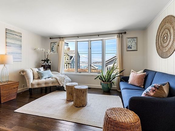 OCEANVIEWS. This home has been renovated w/beautiful custom design features. The living rm has a beachstone fireplace illuminated w/elegant lighting. Onto a seaside den/family rm w/a lrg bay wndow that frames the blue sea. The generous sized dining area has stunning overhead lightng & a lrge wndw that allows in an abundance of natural light. A fabulous gourmet ktchen w/gorgeous quartz cntrs, oversized dining islnd, sea colored bcksplsh, custm cabintry, ss applncs & modern lighting. Gleaming hardwd flrs thru out & an impressive tiled guest bathrm w/glass shwr, chic vanity, sconces & a tucked away laundry area w/wsh/dryer. Upstairs the generous sized main bedrm has windws that showcase the stunning coastline along w/an impressive private tiled bathrm, closets & ceiling fan. The 2nd bedrm has hrdwd flrs, ceiling fan, generous closet & also a nwr bathrm. Full basemnt, nw ht wtr htr & cen a/c. Bckyrd features bluestone courtyrd, grden areas, 5 car prk & garage. Short walk to the beach.