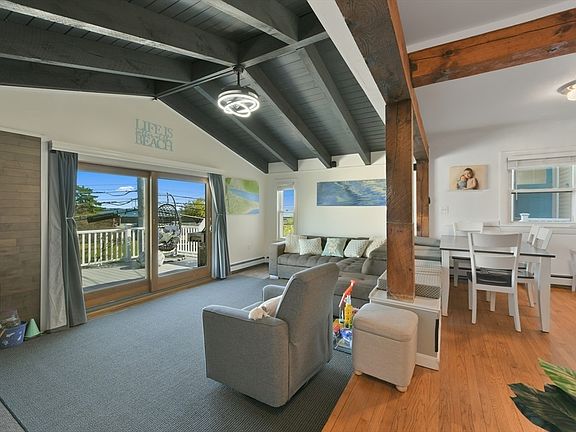 This beautifully renovated 2bedroom/1bath with potential for 3rd bedroom is located in desirable Revere’s Beachmont neighborhood. The open layout welcomes you into the vibrant kitchen, dining and airy living space. It features gorgeous high beams, new cabinets, counter top with backsplash and Stainless steal appliances.There is a sliding door off the living space to an outdoor sunlit deck where you can sit, relax or read a book and watch the sunset/sunrise with breathtaking view of the ocean. Upstairs, you will find two comfortable size bedrooms with natural lightings and hardwood floors. Step outside the backyard and find your outdoor oasis with manicure lawn and patio for bbq’s and more relaxation. In the basement you will find ample storage space and a potential 3rd bedroom that leads out to the front deck. This charming bungalow is a perfect place to call home. Plenty of street parking, great location, amazing beaches, parks and restaurants! Close to T and10 mins to Boston.